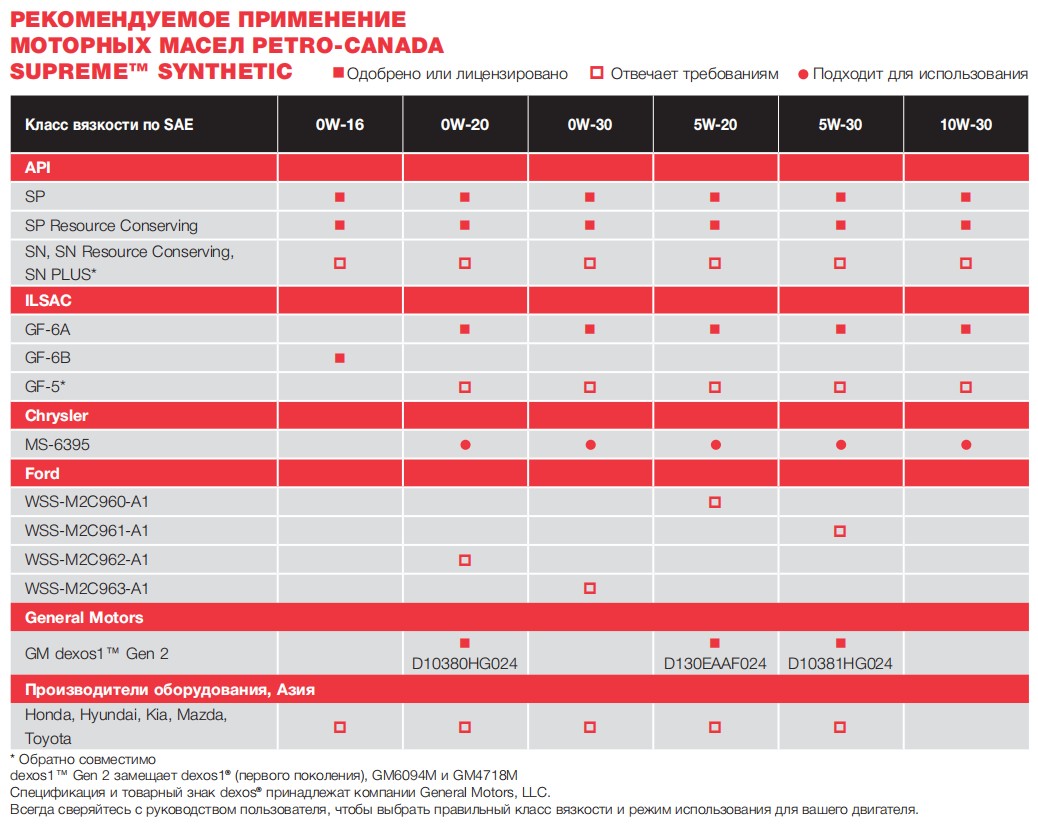 соответствуют требованиям предыдущих стандартов ILSAC и API, включая ILSAC GF-5 (за исключением SAE 0W-16) и API SN, SN PLUS.